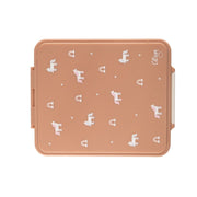 Stores food in 4 separate compartments, in bento lunchbox style. Keeps the lunch bag dry and clean with itsleakproof seal Contains a 1 vacuum insulated food jar (fits up to 2) Comes with 1 sauce container Made without toxic materials (free of BPA, Phthalatesand Lead) Opens easily even with small hands Suitable for kids 18 months Lined with removable silicone for ease of washing Holds up to 1900ml of food, and still lightweight Dimensions: L19*W22*H7cmHand wash with warm soapy water, after removing silicone liningLeave it to airdry overnightNot dishwasher or freezer safeNot microwaveable
