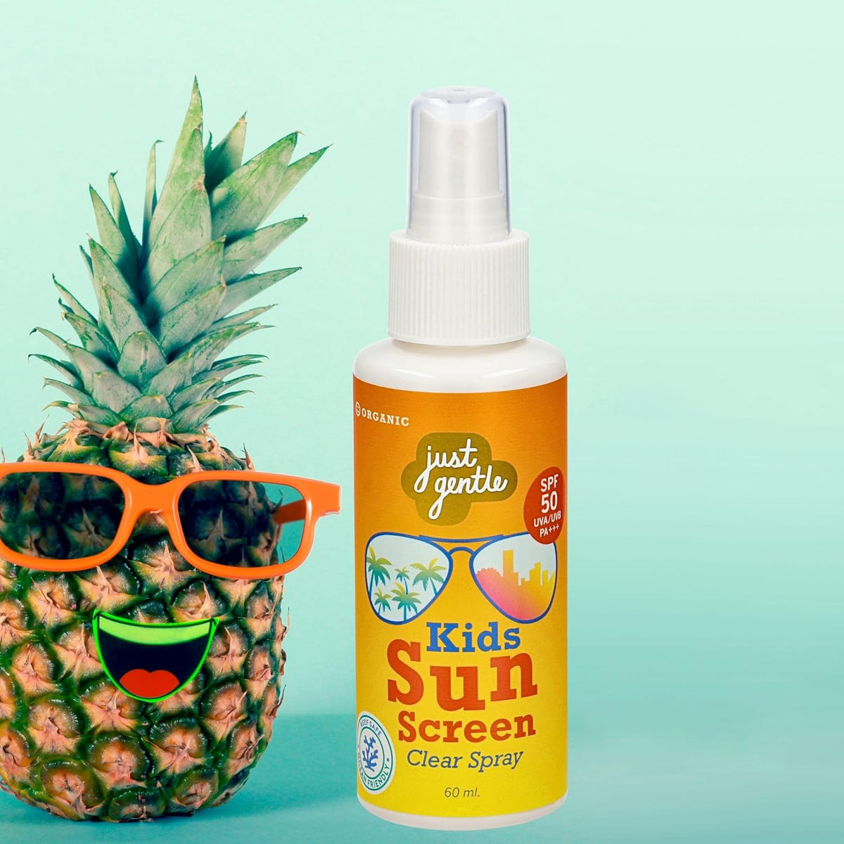 Just Gentle Kids Sunscreen Clear Spray SPF 50 PA+++ is a highly safe, clear non-sticky formula and water resistant formula easily sprays on without leaving any white residue. It offers the highest protection level for the Skin for Kids with high UVA and UVB protection SPF 50 PA +++ and at the same time provides soothing and nourishment with a blend of organic oils such as Jojoba oil, olive oil, Inca inch oil, argan oil, coconut oil and geranium oil. It is free from harmful chemicals such as oxybenzone that harm coral/ocean life. So feel assured that our product not only effectively protects from the sun but is also "Ocean and Reef Safe" too.