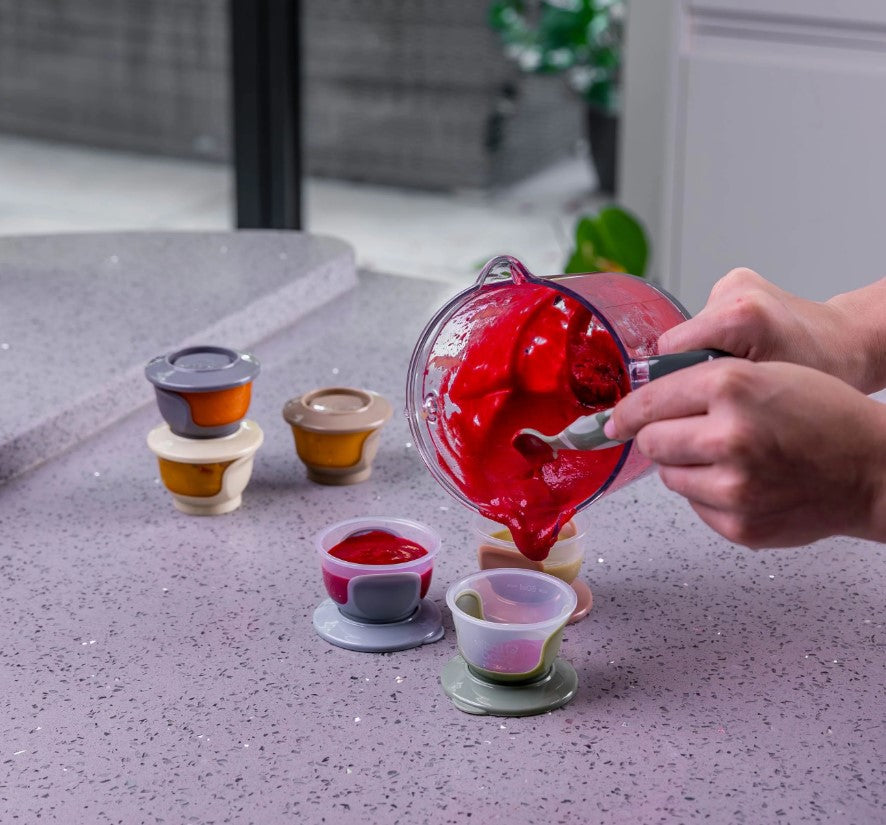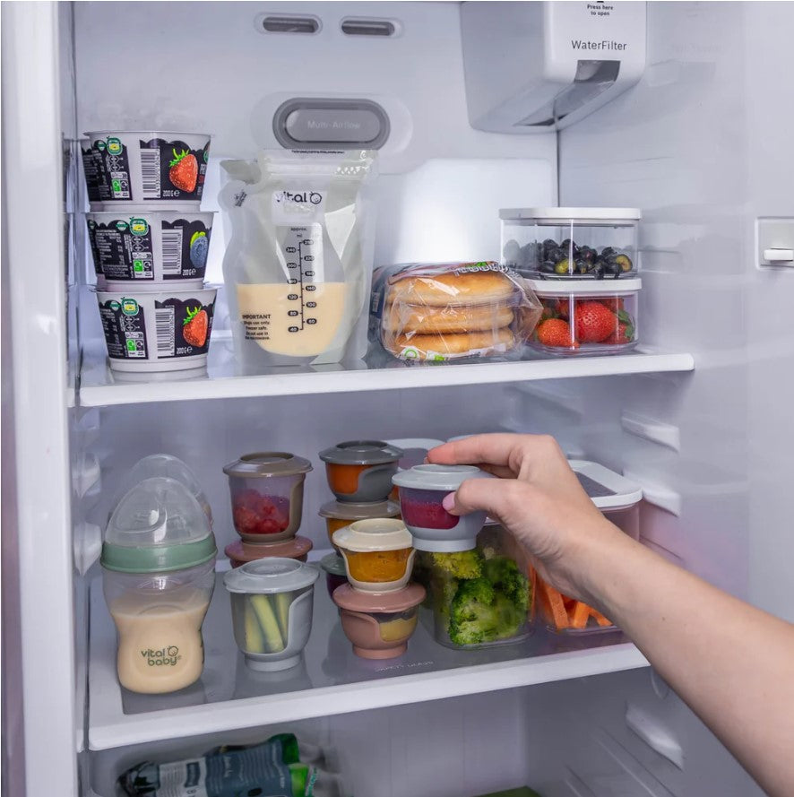 The vital baby NOURISH store & wean pots 120ml are perfectly sized for early weaning when only a small amount of food is needed for the baby