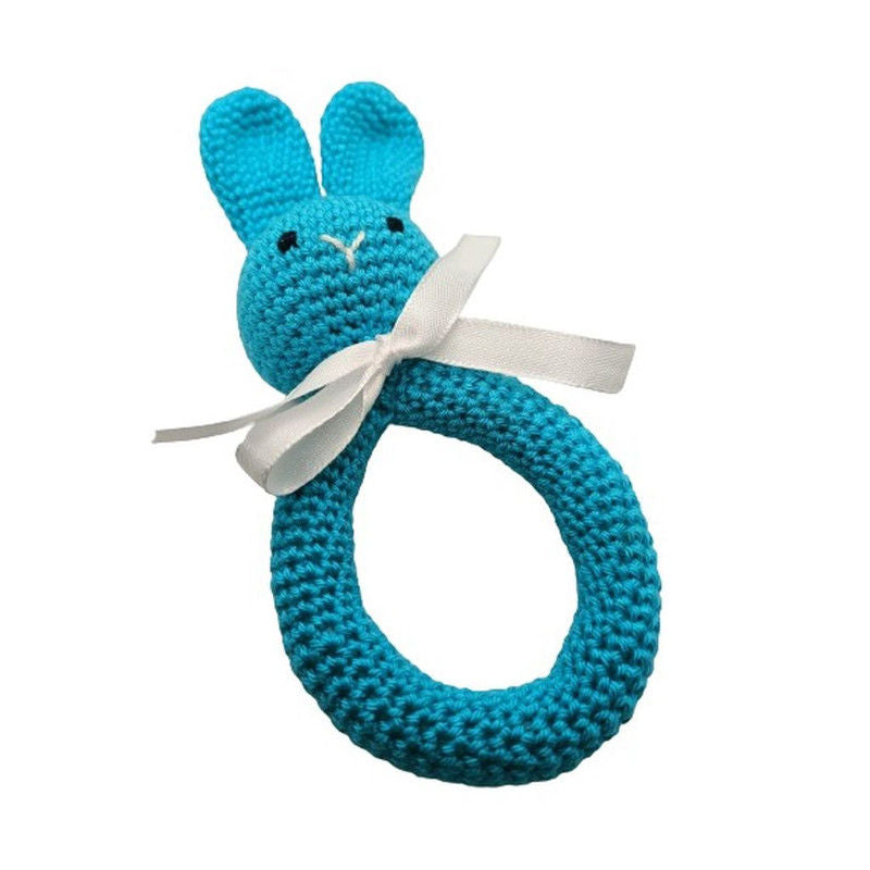 This handmade crocheted teether is designed to develop baby fine motor skillsWith its safe texture soft knitting wool, it provides a nice adorable touch and teething pain relief feelIt also supports the development of baby's early motor skills and handeye coordination all while providing relief from teething discomfortThis unique teether is designed with safety measures, non-removable eye buttons, non-allergic yarn, and high quality fillingMaterials used: 100% soft Microfiber Acrylic, silky effect yarn, and polyester filler
