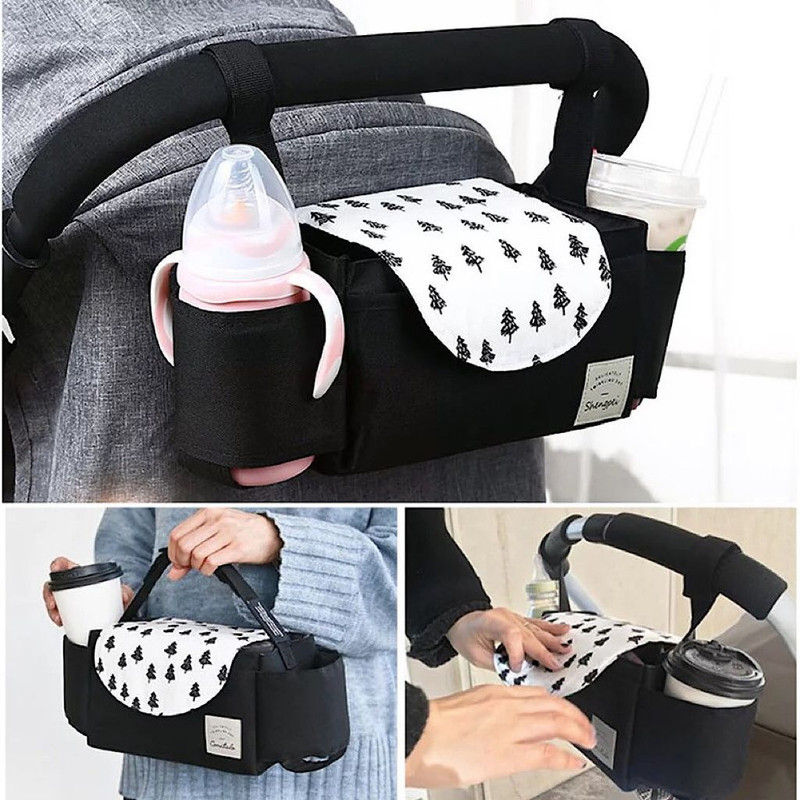 Large capacity and can safely store baby food and snacks, bottles, diapers, your coffee, your phone, name itMade with the thick highest quality materials that will keep your stroller neat and organized, you will be able to store all your important belongings safely and efficientlyConvenient Storage in Chic Design: Includes two deep drink holdersCenter compartment with a chic cover for diapers, wipes, snacks, small toySecret inner pocket for your walletTwo front outer side pockets are great for keeping your cell phone and keysOne back outside pocket can put tablet wellFashionable, lightweight, water resistant, easy to clean, reusable, take it anywhere you go as it comes in so handy as an everyday essentialUniversal fit and easy access: Super easy to install, just simply adhere the adjustable straps to your stroller handles or handlebar and make adjustment if necessaryFront cover is easy to open so you can take items with one hand at any timeConverts to a handbag: Not only attached to the stroller, you can carry it anywhere you likeRight where you need, when you need it